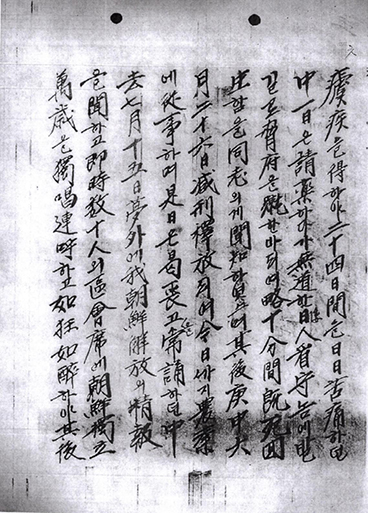 그후 경신(1920년) 6월 26일에 감형 석방되어 금일까지 농업에 종사하여 시일은 갈상(曷喪)고 상송(常誦)하던 중 거(去) 8월[원문은 7월] 15일 몽외(夢外)에 아(我) 조선해방의 정보를 문(聞)하고 즉시 수십인의 구회석(區會席)에 조선독립만세를 독창 연호하고 여광여취(如抂如醉)하여 그후 이간시(二看詩)를 음(吟)하니 왈(曰)