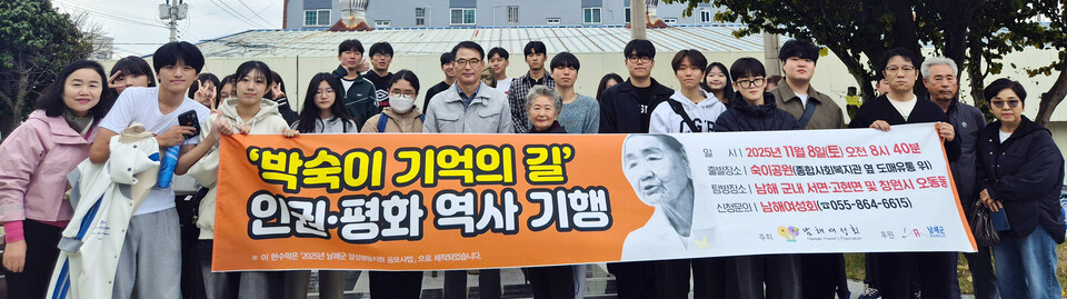 이번 기행은 남해군 양성평등공모사업비로 일본군 ‘위안부’ 피해자이자 남해군 출신인 故 박숙이 할머니의 삶과 뜻을 기리고, 인권과 평화의 가치를 되새기기 위한 취지로 마련됐다.
