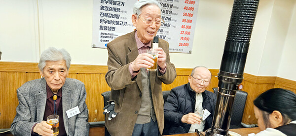 한두원(31회), 이범탁(39회) 전직 회장들과 한채점(37회), 최명호(38회), 김철배, 김형배(41회), 이범순, 한혜주(49회), 김승배, 김안신(50회) 등 참석자들은 한목소리로 “선배님들께서 20여 년 전 수도권에 흩어져 있던 동문들을 모아 동문회를 창립하시고, 특히 지난 2021년 모교 설립 100주년 기념행사 때에는 큰 기쁨과 자부심을 갖게 해주신 원로 선배님들의 노고에 진심으로 감사드린다”며 큰 박수를 보냈다.